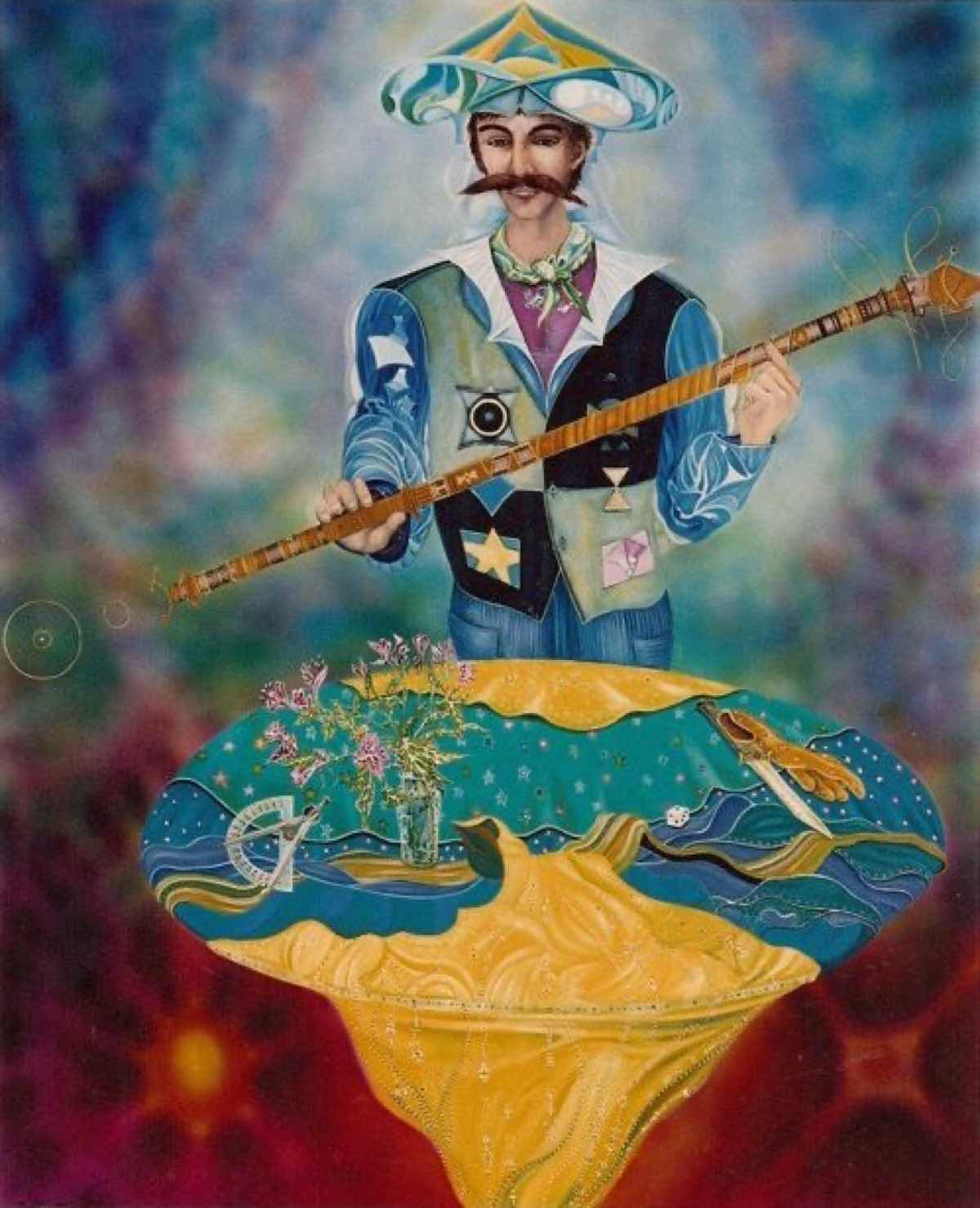 Pictorial representation of the Tarot de Marseille - twenty-two Major Arcana and fifty-six Minor Arcana - as twenty-two 1,22m X 1,52m paintings and fifty-six 17,25cm X 21,25cm pencil drawings. Those artworks, made between 1986 and 1990, were the subject of a Tarot card game and of a book, poetic essay jointly written with the poet José Acquelin, published by Les Éditions de Mortagne in 1991.