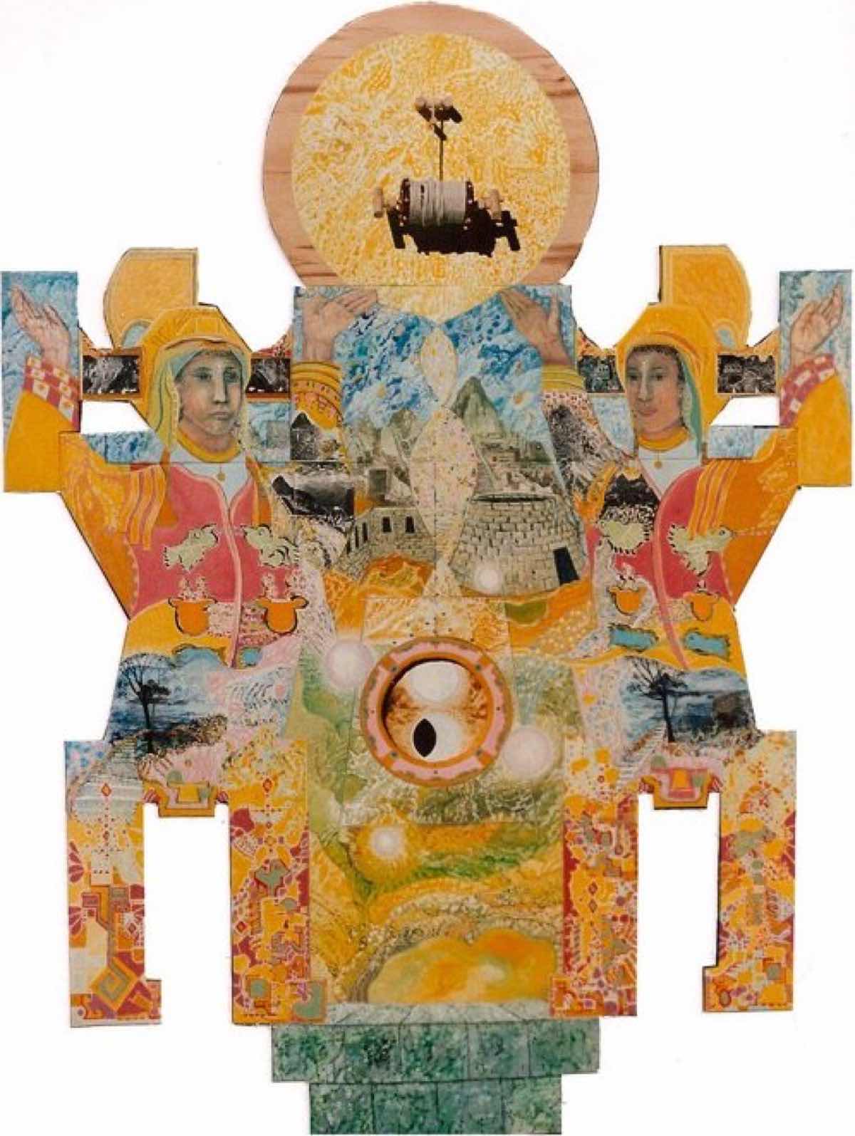 Huile sur toile et bois, quelques collages, 1,88m X 1,4m, 1994.