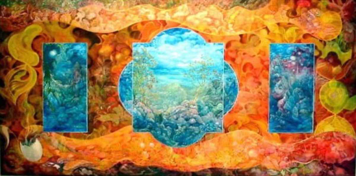 The series will be followed with the preceding one, The secret doors, like if the space of one of these doors could convey us more suitably to an other pictorial travel. And painting, eternal beginning, like life is, allows us as well to: reverse the hourglass, like if it was an eternal blessing. That way, each time we try, even unskillfully, to circumscribe our own existence, believing that we actually do more than just killing time.