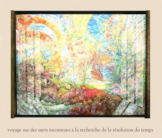 So, how can we paint time? What changes constantly cannot be frozen? That way, are we more talking about traces of an allusive painting, metaphoric, following more over as a paradox, as a journey through what we would imagine sometimes as “out of the continuum”. Height, width, depth, landscape, characters and symbols, part of the canvas, juggle with alienated pretense of being able to represent something primary: presence, this one absolute that inhabits beings and non living things, and that keeps on perpetuating life. Time will tell will therefore include about ten or so art pieces starting from second to second, minutes to minutes… stopping by the eighth day, on the footsteps of time, by the traveling on unknown seas looking for time solving, and the curvature of the surface.