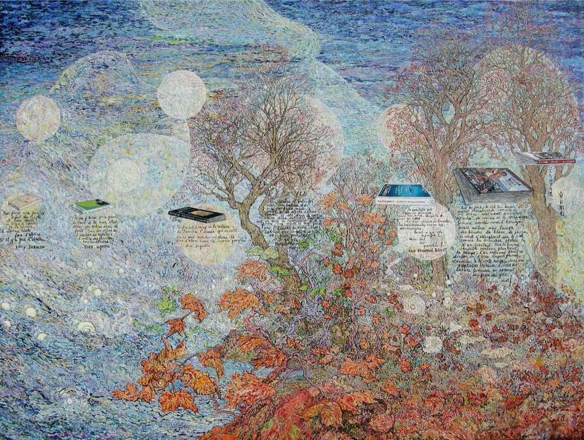 Tant de mots, tant de pages écrites depuis toujours, tant de livres offerts à la pensée, tant d’Everest en papier, tant d’idées formulées dans tant de langues, s’alignent sur les rayons sans nombre de nos bibliothèques. Même le futur, dont on perçoit déjà l’écho en langue data, semble pouvoir s’y profiler, avec une grande frénésie de clavardage qui souhaite tout renouveler. Depuis toujours, les écrivains échafaudent des forteresses de logique, et tentent d’en détruire d’autres, se risquent aussi à l’élucidation naïve des mystères du monde, ce monde outrancièrement chiffré dans lequel la vie évolue tout en prenant somme toute plaisir à être compliquée.
